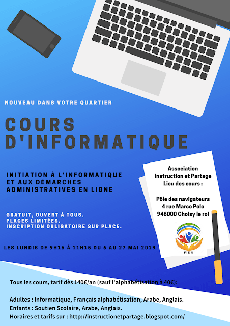 Les jeudis de 18h à 20h à la Maison des associations de Créteil - (Hors vacances scolaires et jours fériés).