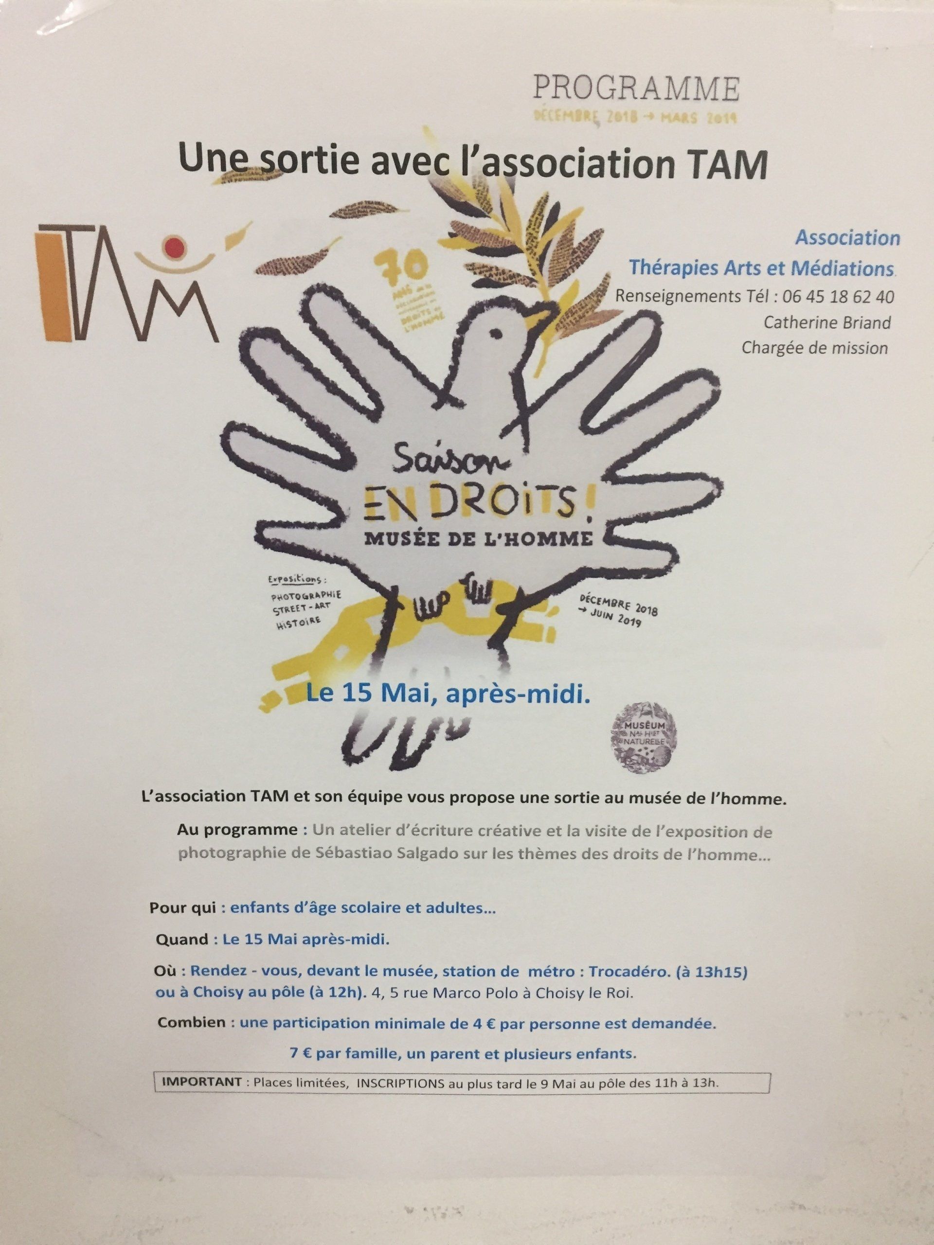 L'association Thérapie-Arts-Médiations (TAM) a pour but d'accompagner les personnes durant des phases complexes de leurs parcours, changements de vie, migration, isolement, maladie...par la création artistique et la parole